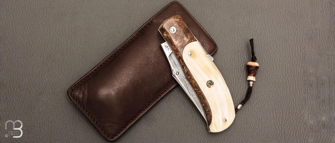 Couteau  "Truand lock-back" par Tony Ruot - Ivoire de phacochère et loupe de chêne