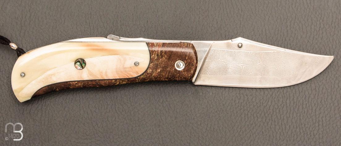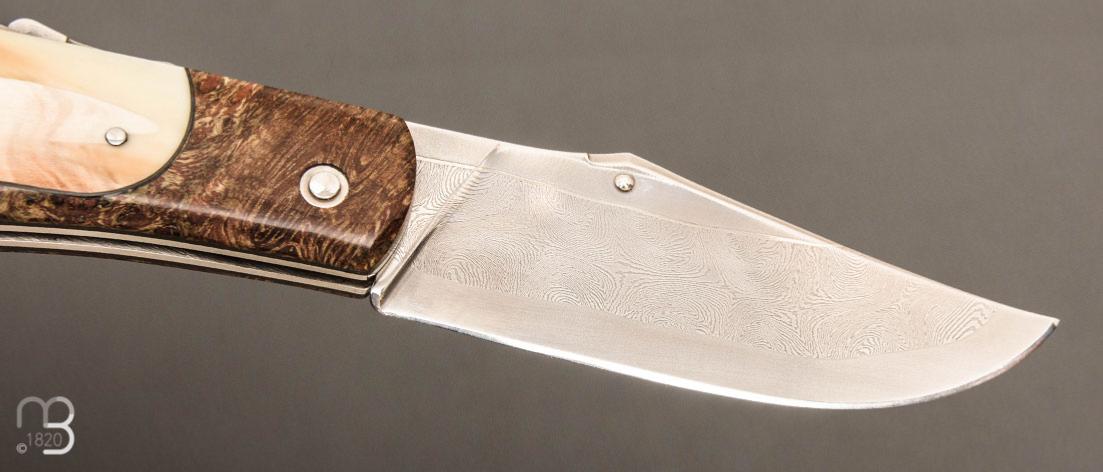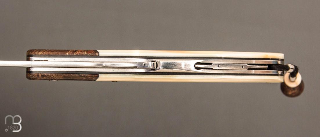 • Couteau  "Truand lock-back" par Tony Ruot - Ivoire de phacochère et loupe de chêne