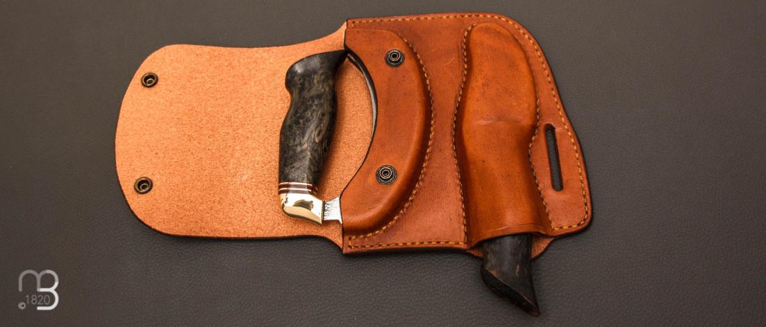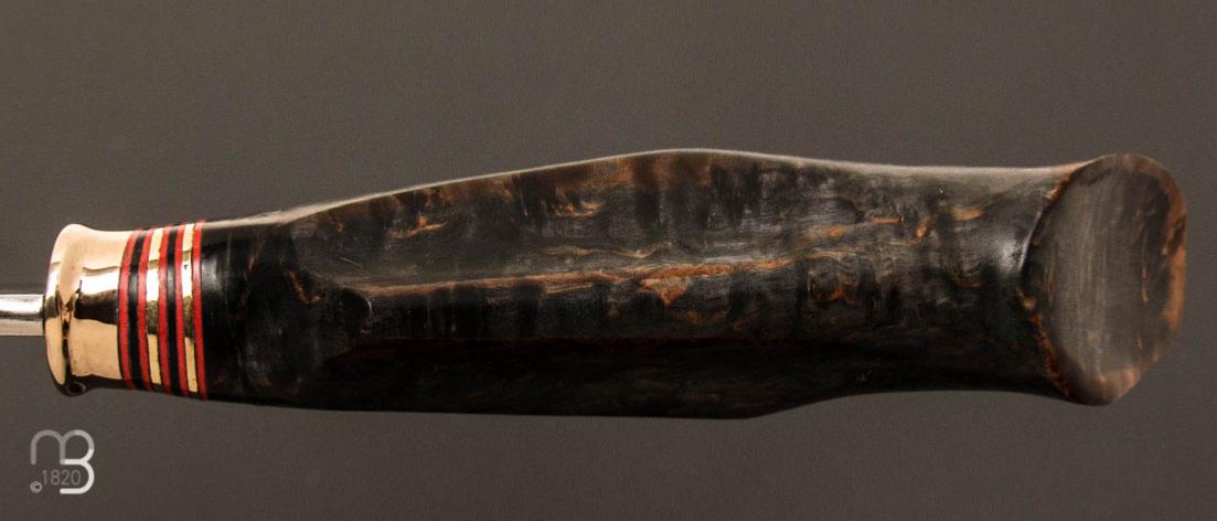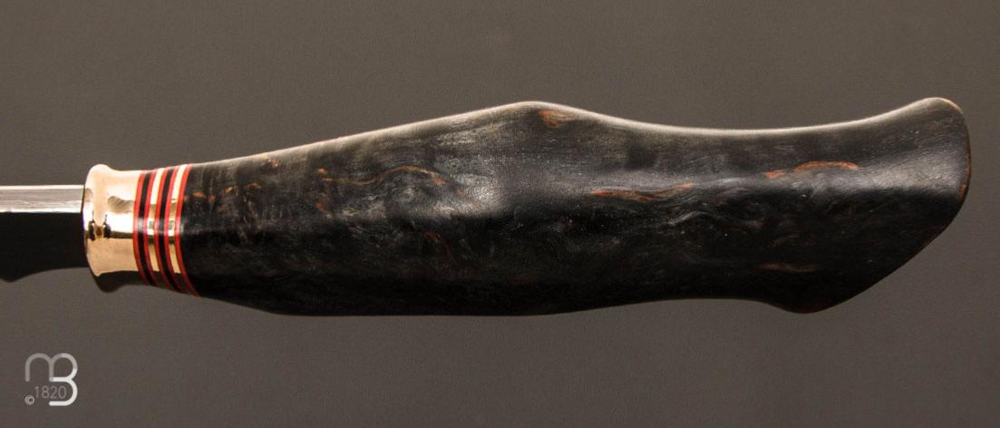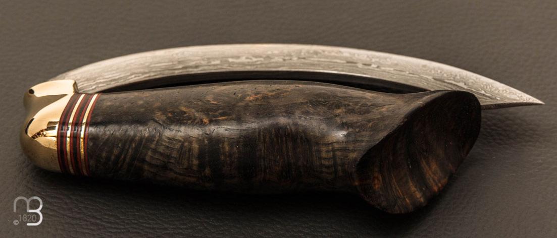 - Un couteau à éviscérer avec un manbche en loupe de bouleau est une lame en damas