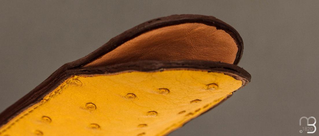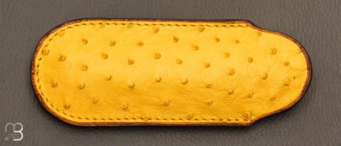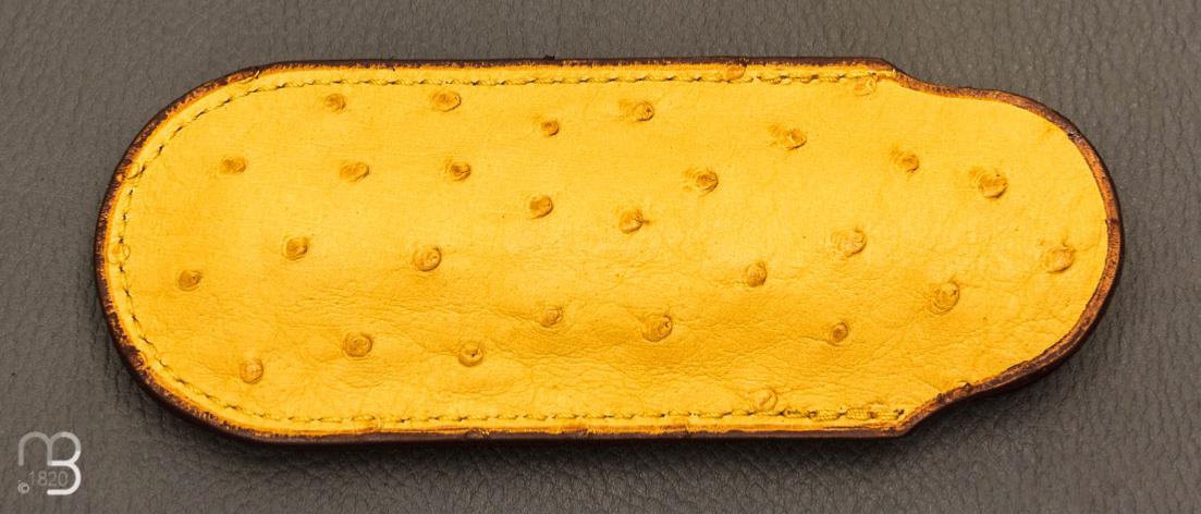 Etui cuir d'autruche / veau pour couteau pliant fait main par Chantal Trocmé - Citron